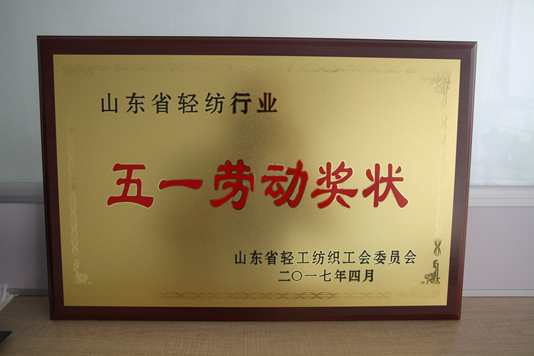 公司榮獲“省輕工紡織工會五一勞動獎狀”