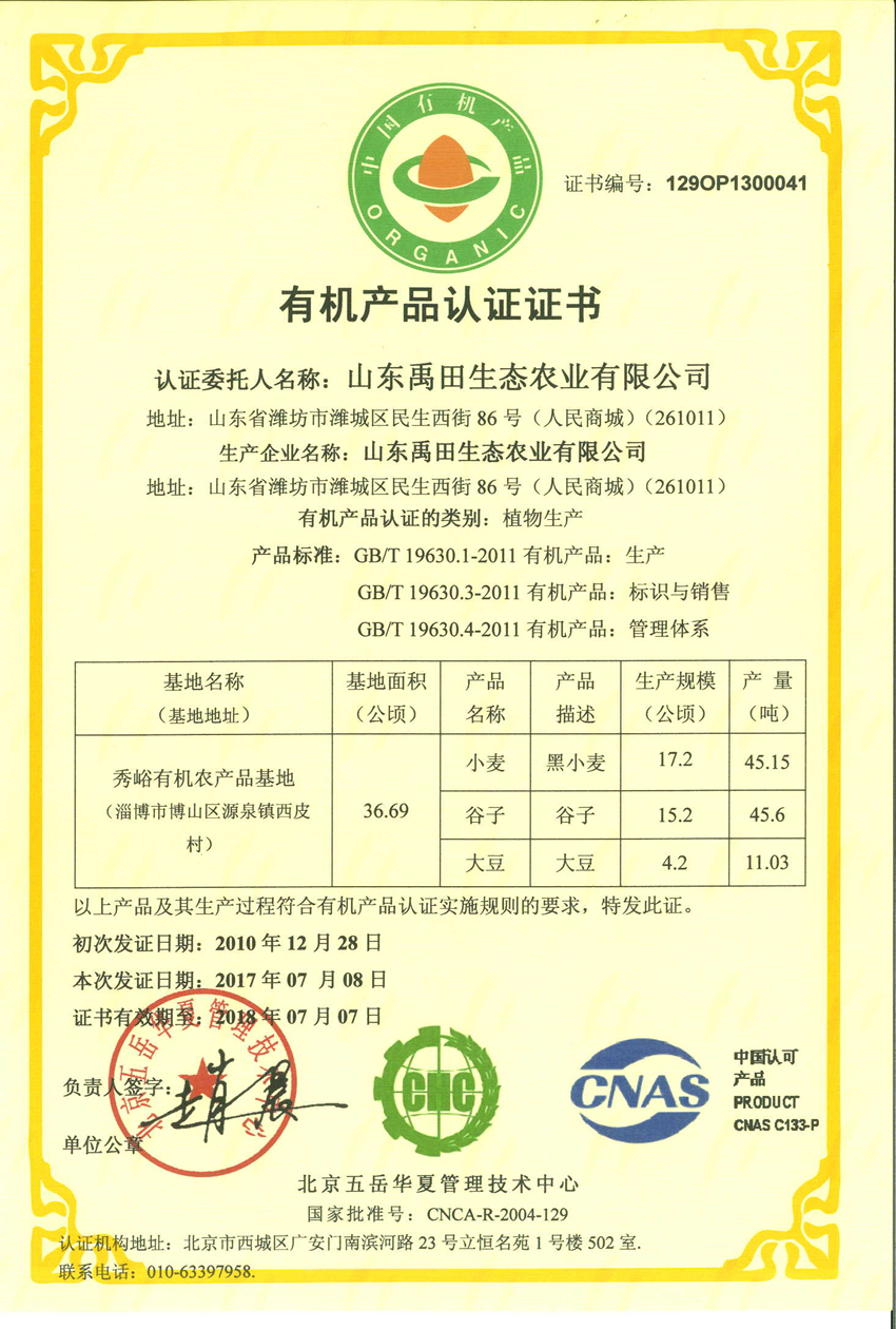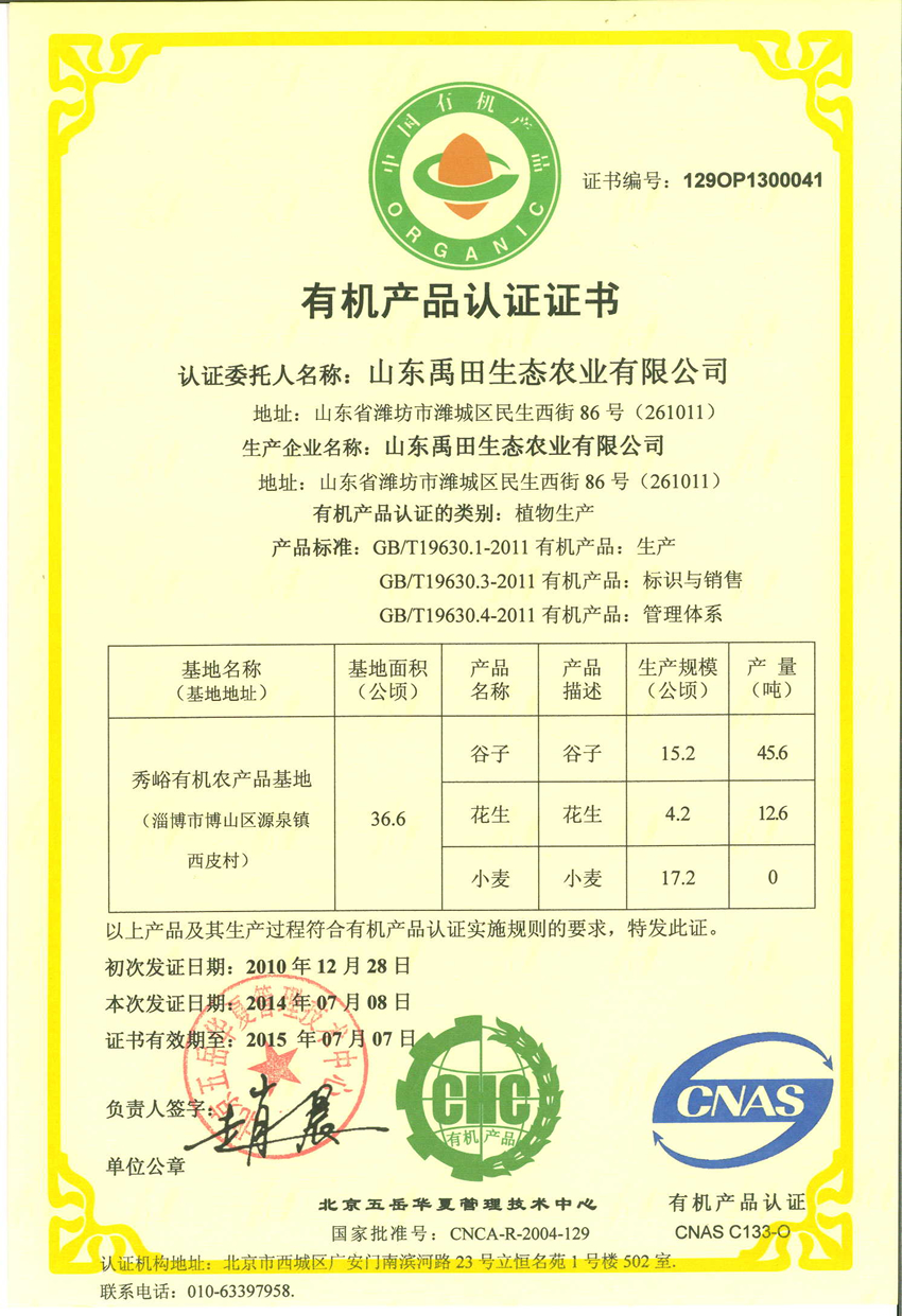 有機產品認證—2014-2