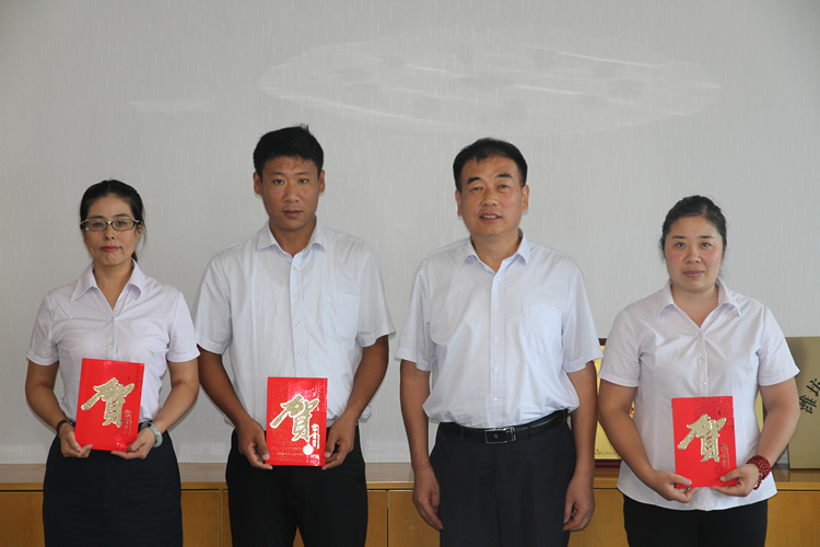 ▲7月12日,公司召開7月份經營工作調研會。會上,根據“創先爭優 勞動競賽”活動考核方案,授予商城“突破獎”,民生店、幸福店“敢動獎”。程亞利董事長為獲獎單位頒獎,號召大家再接再厲。 (總經理辦公室 田琦)