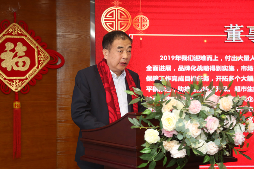 程亞利董事長指出,2020年是企業(yè)的轉(zhuǎn)折年、關(guān)鍵年、提升年,要繼續(xù)堅持“提質(zhì)增效”目標不動搖,全力推進經(jīng)營工作。把好決策、執(zhí)行、考核、監(jiān)督四道關(guān);做好使用人、發(fā)展人與人才梯隊建設(shè)工作;以經(jīng)營創(chuàng)新改革為切入點,全力提高管理水平和經(jīng)營效能,用“新發(fā)展”來解決企業(yè)面臨的主要矛盾和基本問題。“致辭”就經(jīng)營改革創(chuàng)新提出一攬子部署,為年度工作指明方向:我們要懷抱“豐華夢”這一崇高愿景,振奮開拓創(chuàng)新的精神,用能擔當?shù)蔫F肩膀、干成事的真本領(lǐng),在“非常之時”行“非常之事”,人人走新路,個個有作為。會上,公司對年度領(lǐng)軍人物、優(yōu)秀管理者、先進部室、先進工作者,以及超市優(yōu)秀主管、超市優(yōu)秀員工和“學(xué)習(xí)強國”積極分子進行了表彰,而最后的董事長特別獎更是引來臺下陣陣掌聲。程亞利董事長對受到特別表彰的六個單位的事跡如數(shù)家珍,一一道來,他們無怨無悔落地執(zhí)行、不辭勞苦熱情服務(wù)等精神深深鐫刻在每一位員工心里。董事長最后為大家加油鼓勁:“艱難和困苦,休想阻擋我們前進的步伐;困難和壓力,只會使我們變得更加堅強。”“功成必定有我,創(chuàng)業(yè)舍我其誰!”